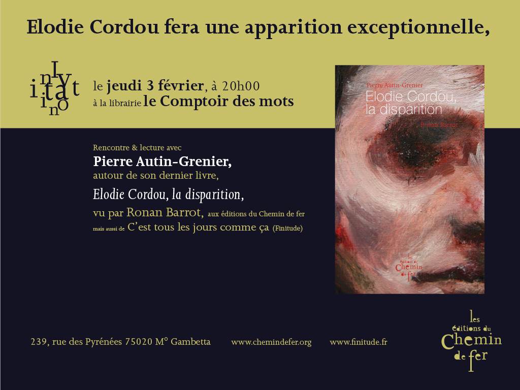 autour de son dernier livre : Elodie Cordou, la disparition, vu par Ronan Barrot (éditions du Chemin de fer)