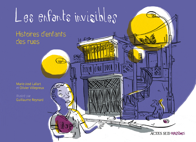 - Les enfants invisibles – Histoires d’enfants des rues – Marie-José Lallart et Olivier Villepreux. Illustrations de Guillaume Reynard. Actes Sud Junior, septembre 2012. 96 pages, 17 €.