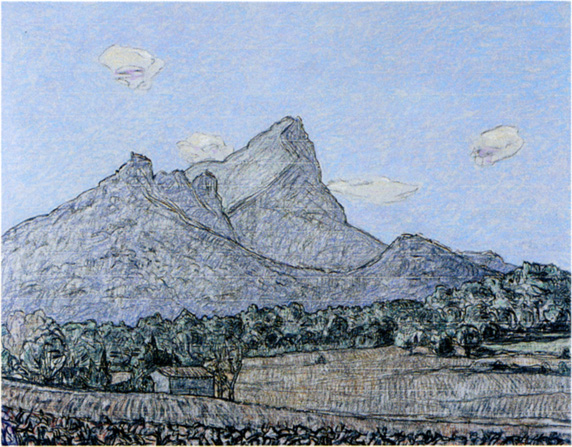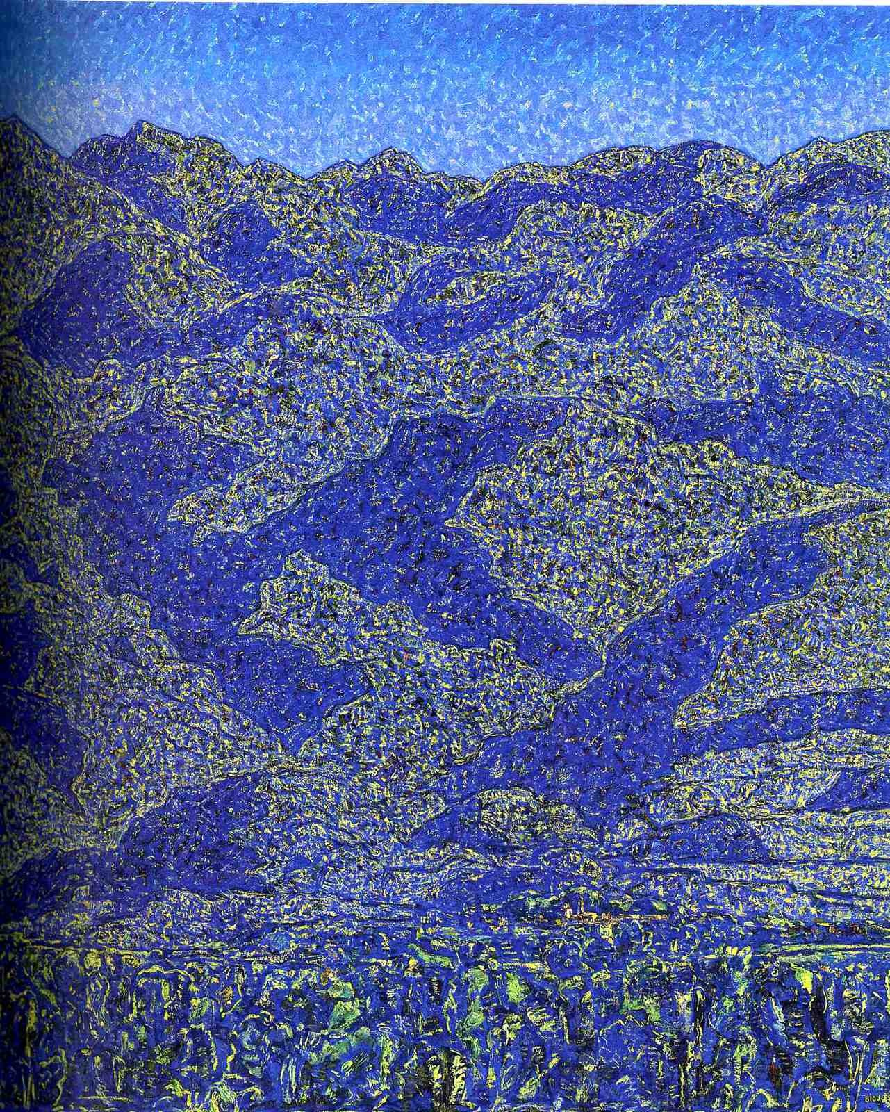 Bioulès dirait, pareillement, que la puissance de révélation n’est pas de son ressort : seul un créateur de la Totalité peut révéler à l’homme son mode d’emploi spécifique d’elle. Révéler, c’est, pour Dieu, formuler à l’être humain ce que sa conscience d’avoir une source absolue peut et doit faire d’elle-même. Un peintre croyant décline donc par principe l’offre tentante de nous révéler quoi que ce soit : pour Dieu qui révèle, sa Création est au passé (comme un souvenir), mais l’usage humain qu’il préconise d’elle est au présent et au futur (comme son projet que l’homme apprenne à vivre dans cette création, fidèlement à sa source reconnue). Mais voilà que notre peintre écrit quelque chose d’anodin et décisif : « La grande difficulté comme dans toute ma vie est de ne pas confondre les souvenirs et les projets ». Pour qu’une révélation ait lieu, il faudrait qu’un travail cesse (chose impossible chez Bioulès) de se nourrir de lui-même, qu’on comprenne une fois pour toutes le secret d’une conception propre, la signification d’une émergence, qu’un horizon sans nostalgie, un engagement sans réminiscence, se dégage enfin. Ce qui est possible pour Dieu ne l’est pas pour Bioulès : ne saisissant ce qu’il va faire que dans les problèmes que lui pose ce qu’il vient d’accomplir, il n’est pas assez libre du temps pour imaginer produire irréversiblement du décisif, ni décisivement un savoir sans retour. Il ne révèle pas, il approfondit.