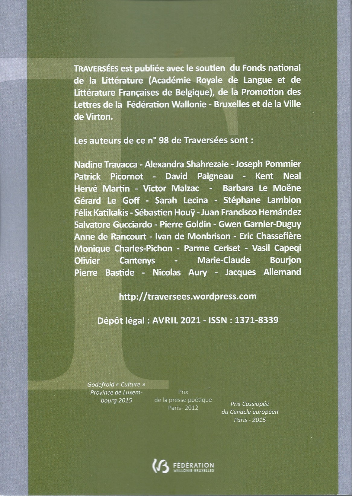 N°98 —2021-II 21 Mai 20215 octobre 2021 / lievenn Télécharger la LISTE DES 1110 AUTEURS DE TRAVERSÉES! classementparauteur-2Télécharger Partager :Partager sur Tumblr Cliquer pour envoyer un lien par e-mail à un ami(ouvre dans une nouvelle fenêtre) E-mail TweetJ’aime chargement… Similaire