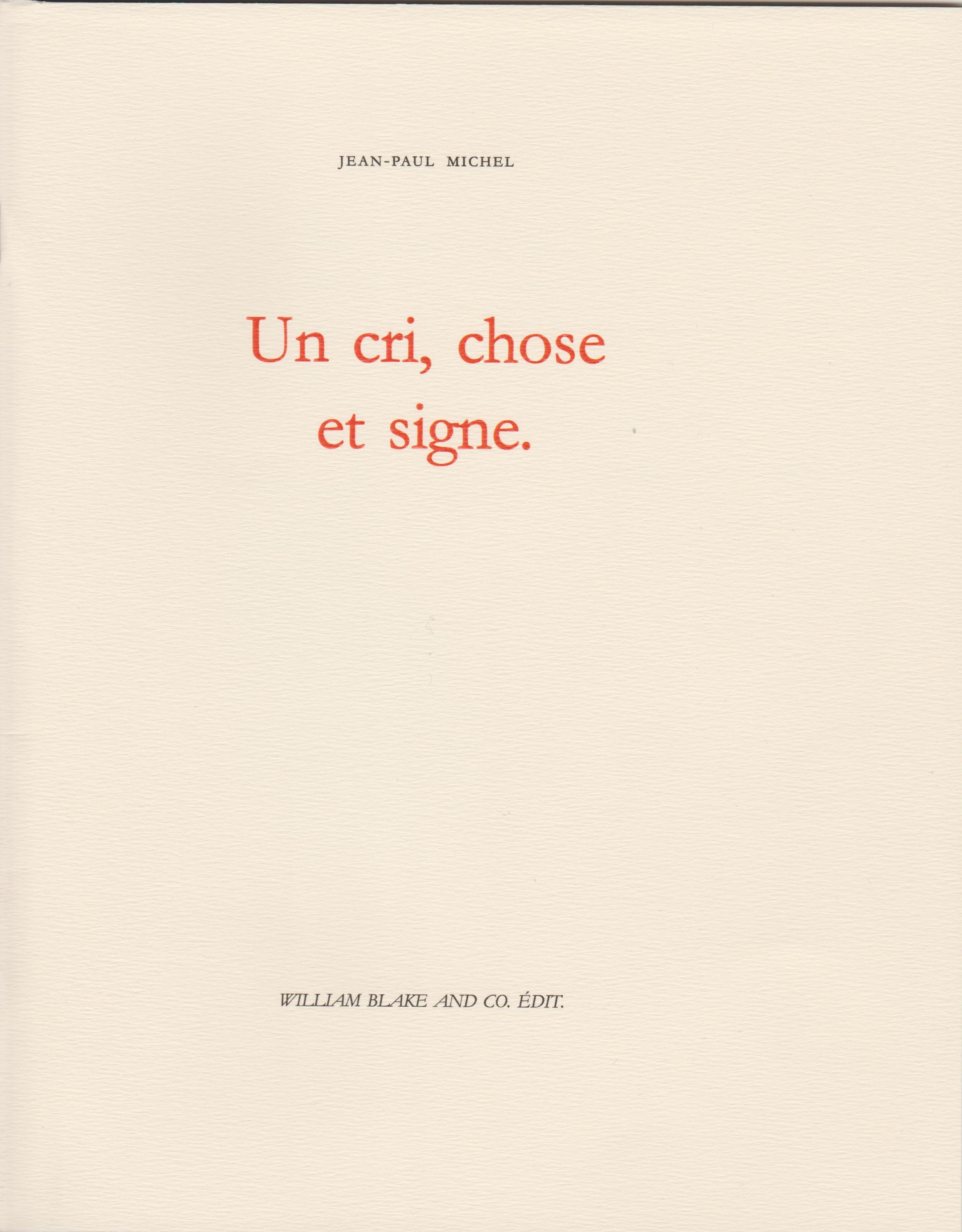 Jean-Paul MICHEL – Un cri, chose et signe – William Blake and Co. Édit. (Bordeaux), août 2021, 28 pages, 8€