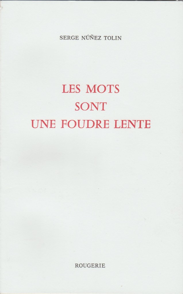 Serge NÚŇEZ TOLIN – Les mots sont une foudre lente – Rougerie, mars 2023, 80 pages, 13€