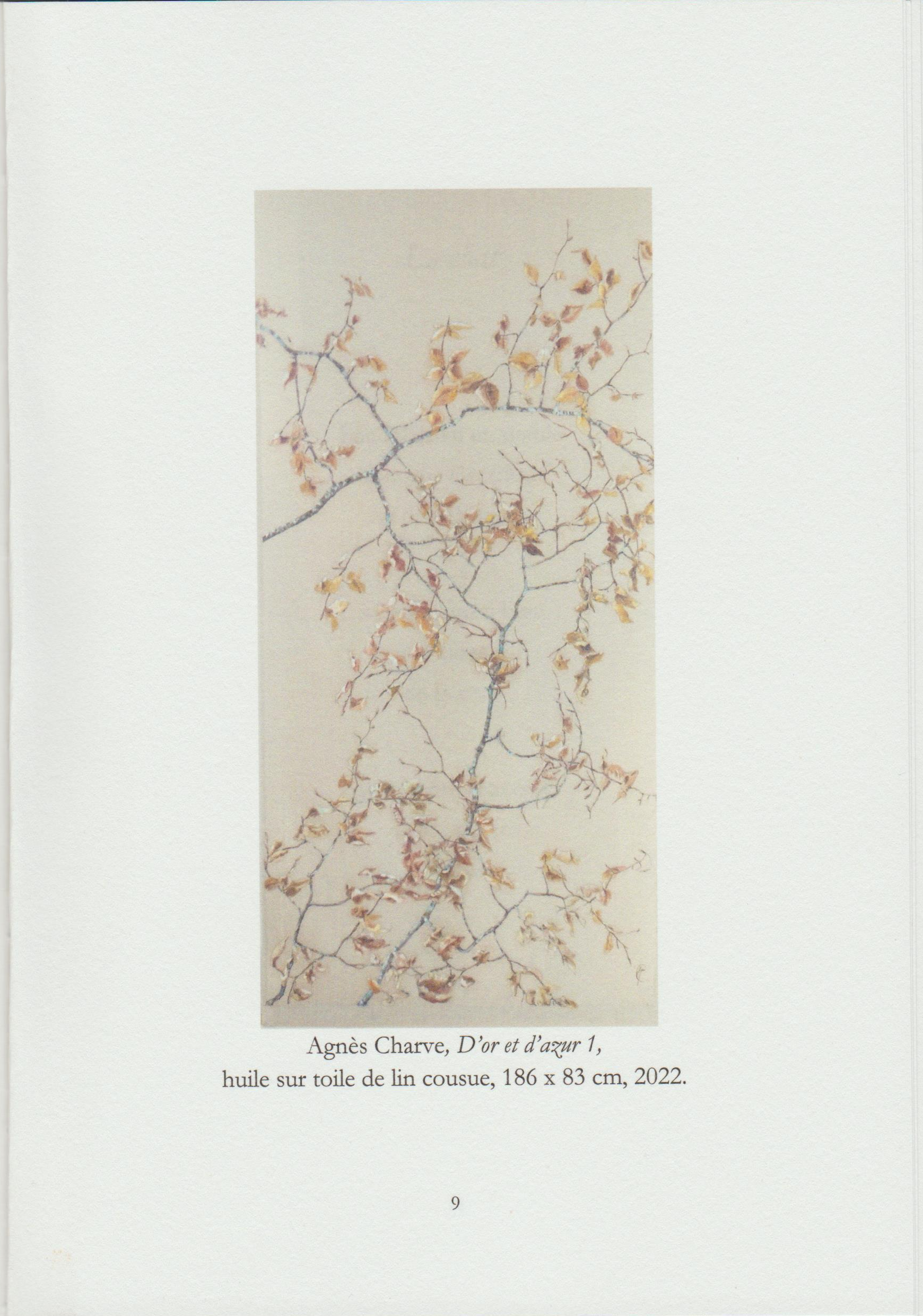 Reste les quelques images d’Agnès Charve (fines et précieuses) qui ponctuent, par contraste heureux, le recueil. On n’y verra donc pas du tout illustrations du texte (la peintre, par fonction, illustre ce que sait faire la lumière, nous met à même distance des parties d’une scène « à plat », nous permet d’inspecter l’entre-voisinage des formes et l’entreposition des objets ou éléments – ce qu’aucune parole ne peut ni ne doit réussir !), mais (comme l’indique Christian Ducos lui-même) ce sont là « pauses » bienvenues, « brèches » utiles, natures mortes parce qu’elles n’ont justement pas, elles, à se comprendre vivre, ni à cultiver leur image ! La plus belle frondaison du monde n’aura jamais le moindre usage d’un miroir que notre seule perplexe identité se tend à elle-même.