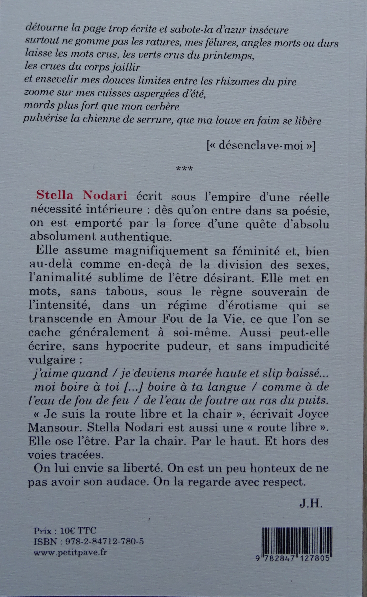 Combat entre la volupté et la nuit, la soif indomptée de vivre et le mystère térébrant d’une origine censurée. Point ici de plaintes ni de larmes, ni même de mélancolie, mais la lame chauffée à blanc du désir pour résilience. Une poésie jaillissante, aux métaphores venues tout droit du brasier des entrailles et du geyser du sexe. Une poésie qui carillonne à pleine sève mais sait la ténèbre des profondeurs et, surtout, la menace mémorielle d’une enfance victime d’un « détournement de candeur ». C’est alors une poésie qui transperce, tel le cri de l’hermine les nuits de pleine lune.