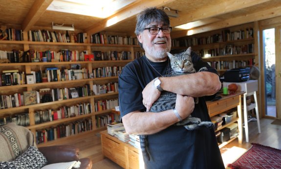 C’est par une soirée d’hiver genre Docteur Jivago que j’étais allé rendre visite à Guy Goffette. Belle entrée en matière pour retrouver un poète ! Il m’attendait occupé à classer les livres, à secouer des rayonnages de bibliothèque. La conversation s’entama par des biais étrangers à la chose littéraire, puisque d’emblée, en effet, Guy Goffette posait sa fonction créatrice sur un plan éloigné de l’image bucolique d’un artiste en retrait de la vie publique. Invité récemment à une rencontre internationale de poésie à Tel-Aviv, il subordonnait son éventuelle acceptation à la participation de poètes palestiniens ! Au-delà de cette manifestation de solidarité, l’auteur aime à mettre en exergue combien la poésie garde de force, elle qui continue à se publier dans des milieux fermés. Contestataire à sa manière, il refuse aussi les classements, les étiquettes : Exception faite de ma collaboration active à la revue « Triangle » (une revue publiée de façon artisanale par Guy Goffette lui-même et à laquelle participaient surtout des poètes lorrains et luxembourgeois), j’ai toujours été extérieur à tout groupe, à toute école.