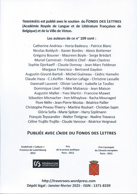Avec le soutien du FONDS DES LETTRES – Académie Royale de Langue et de Littérature Françaises de Belgique