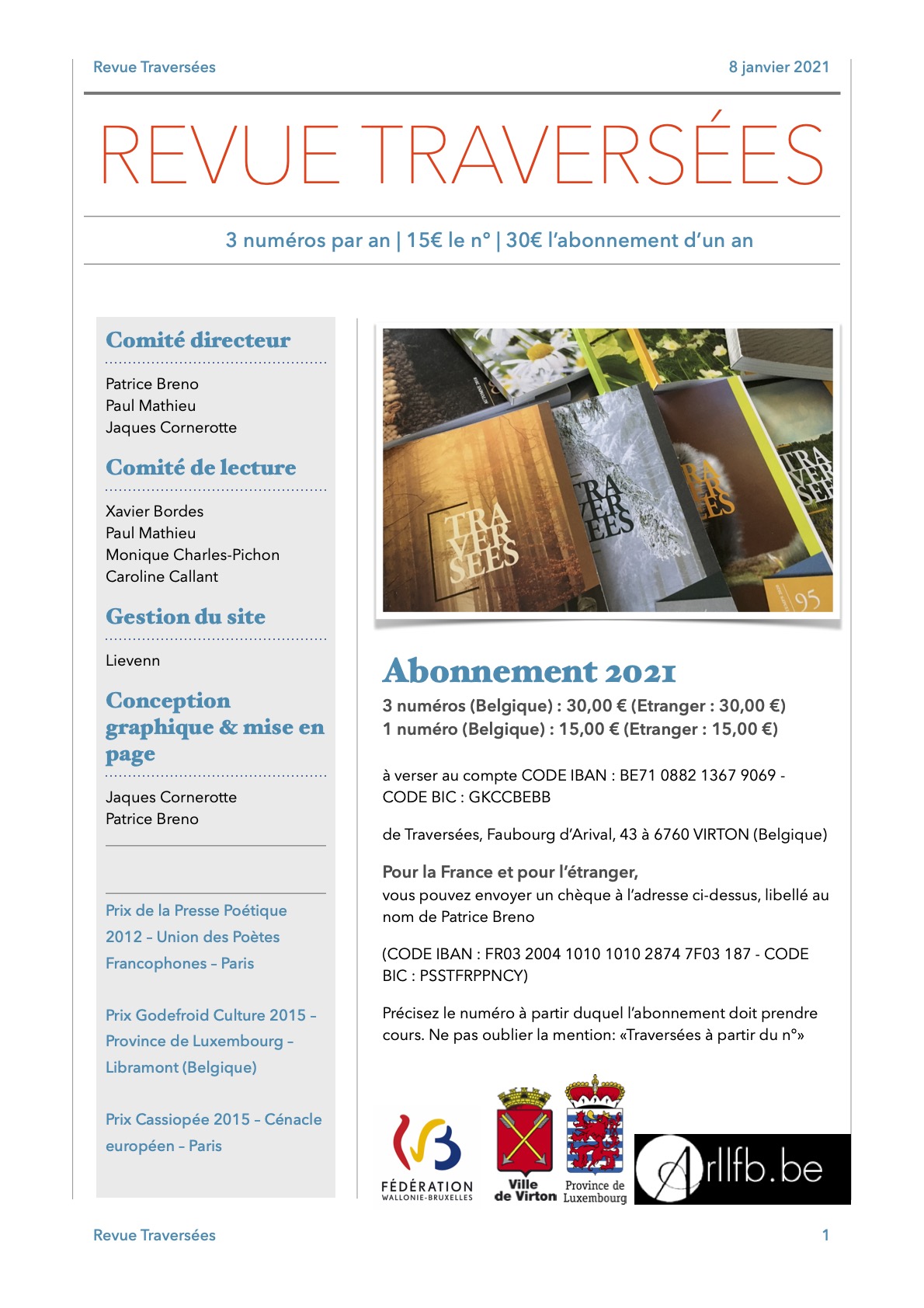 Traversées, N°107, 2024, II 232 pages, 1numéro: 15€, abonnement à 3 numéros: 30€.