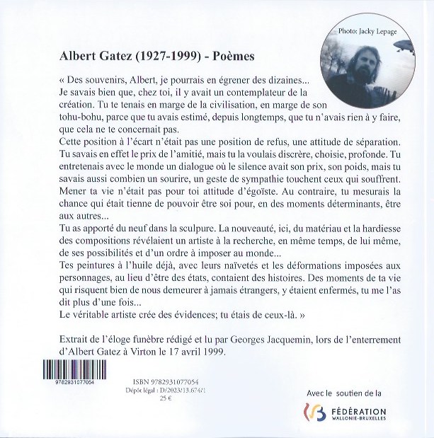 La poésie d’Albert Gatez ne se lit pas qu’au travers de ses mots, elle nous guide par delà ses peintures, au delà de ses sculptures. Ce livre lui rend un bel hommage.