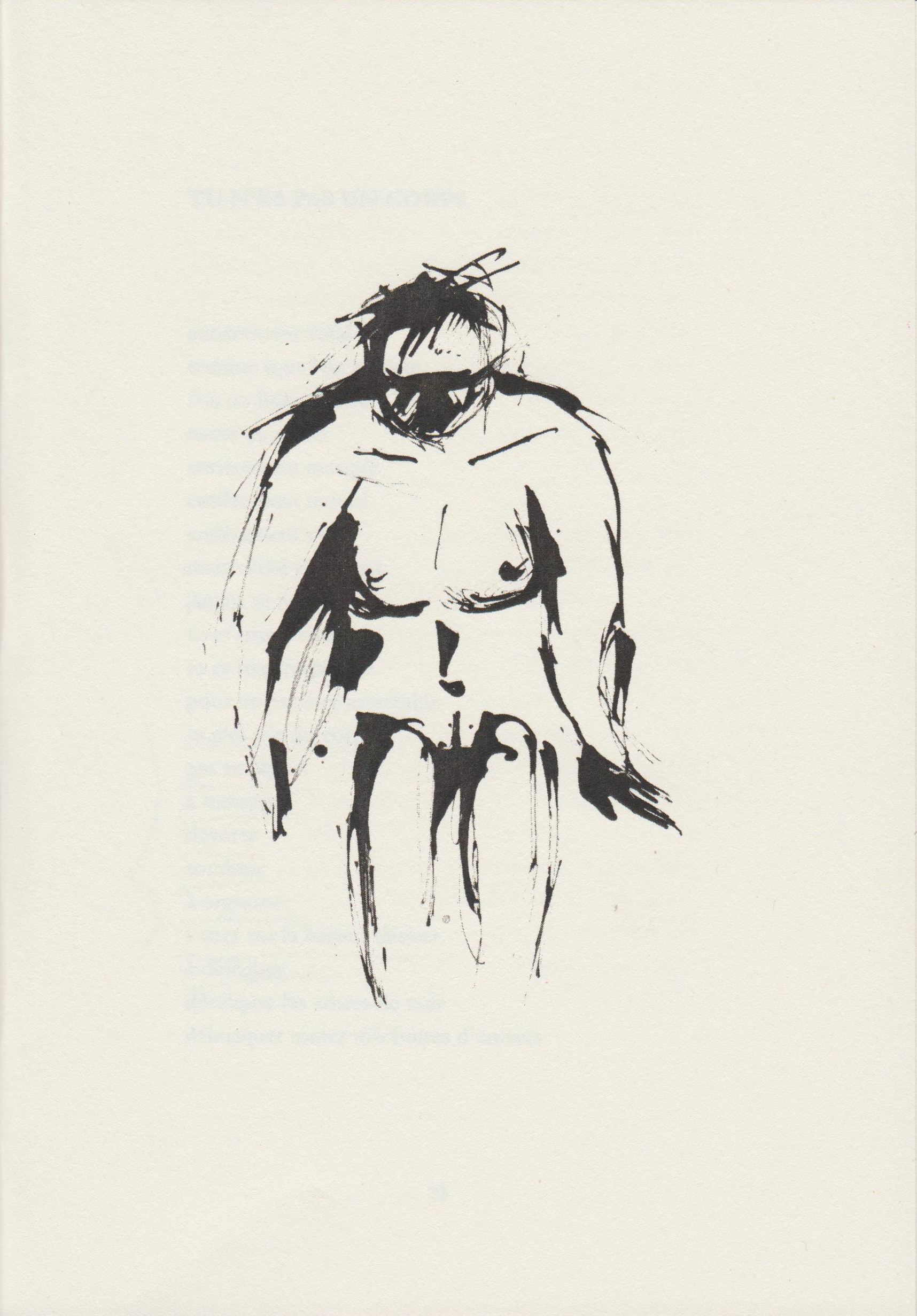 « Tu me laisses au milieu du monde. Ma peau ne résistera pas à la nuit froide. Je n’ai aucune langue pour lécher les os rougis, aucun feu pour éteindre le silence qui rampe entre tes jambes. Tu me laisses au milieu d’un monde qui ne me connaît pas »