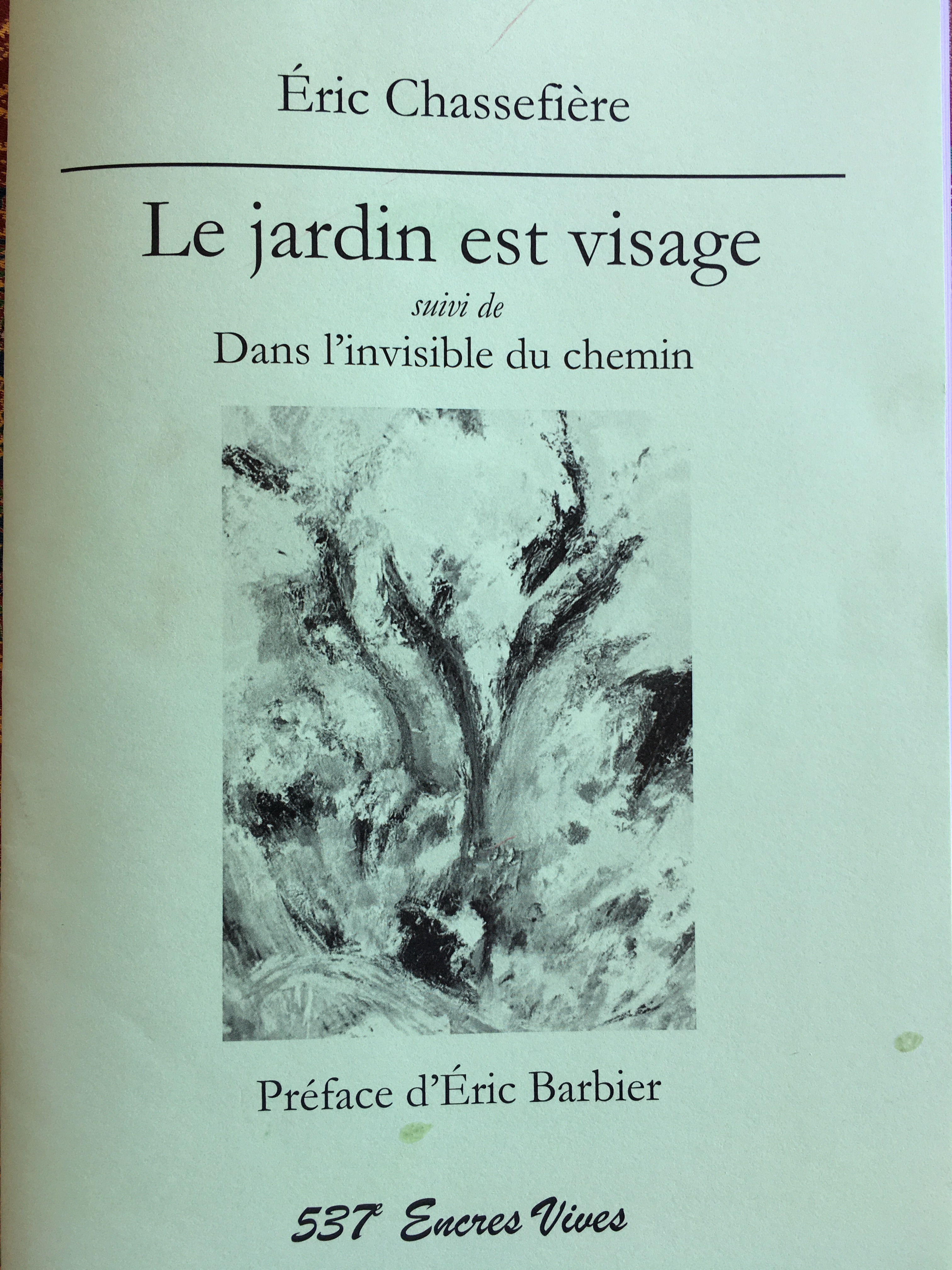 Éric Chassefière, Le jardin est visage suivi de Dans l’invisible du chemin, préface d’Éric Barbier, 537ème Encres Vives, 32 pages, juillet 2024, 6,60€.