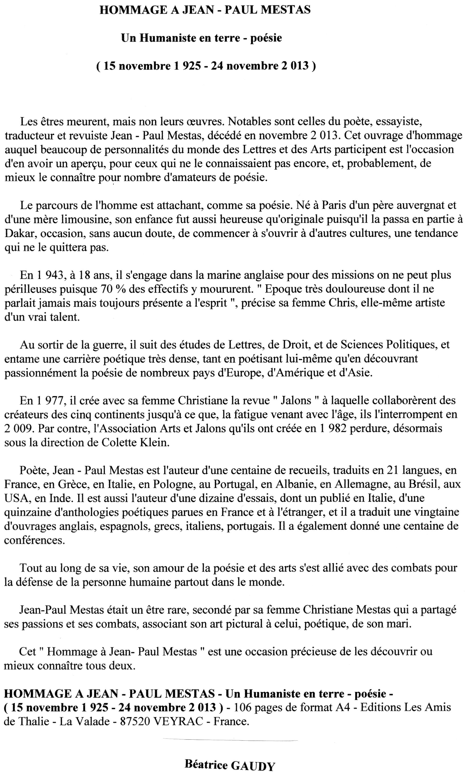 La poésie est le creuset créatif des connexions et des méridiens. Merci à Paul Louis Rossi qui a su trouver pour nous le souffle et les mots pour ouvrir cet ample imaginaire analogique.