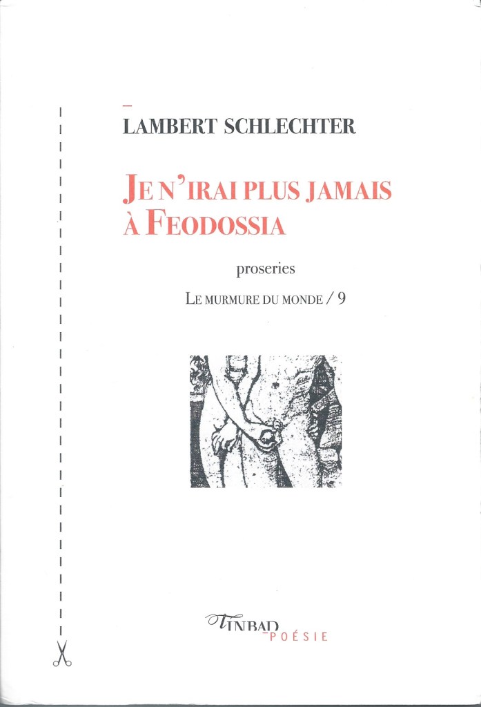 Lambert Schlechter, Je n’irai plus jamais à Feodossia, proseries, Le murmure du Monde/9, Tinbad poésie, 226 pages, octobre 2019.