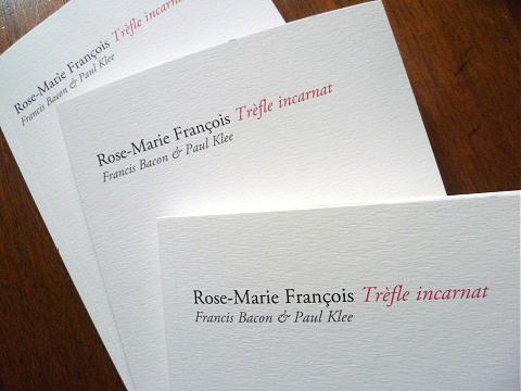L’espace poétique créé par Rose-Marie François ouvre bien des interrogations et suggère comment formes et couleurs libèrent ce qui semble s’étendre librement en un espace strict. Tout joue dans cette problématique sur le décalage. La poétesse saisit la puissance de l’artifice de Klee, de l’organique chez Bacon. Trèfle incarnat reste sur une ligne de crête : imaginaire et réel, abstraction et figuration, artifice et fait de nature créent par la poésie même des lieux étranges entre l’image et le monde proposés par les deux peintres.