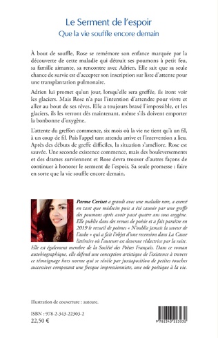 Rose est atteinte d’une maladie grave des poumons qui la condamne à moyen terme. Ce livre raconte son difficile parcours, un combat de chaque instant pour la vie. Il ouvre nos yeux sur le quotidien des personnes atteintes de maladies incurables qui vivent avec cette sentence de mort comme une épée de Damoclès au dessus de leur tête. Lorsque la greffe d’organe devient l’unique chance de survie comme cela devient le cas pour Rose, ce livre nous confronte à la grande difficulté des décisions à prendre, aux dilemmes qu’impose chaque choix. Même lorsque les décisions les plus difficiles sont prises, il faut pouvoir assumer les conséquences sur le plan tant physique que moral et affectif.