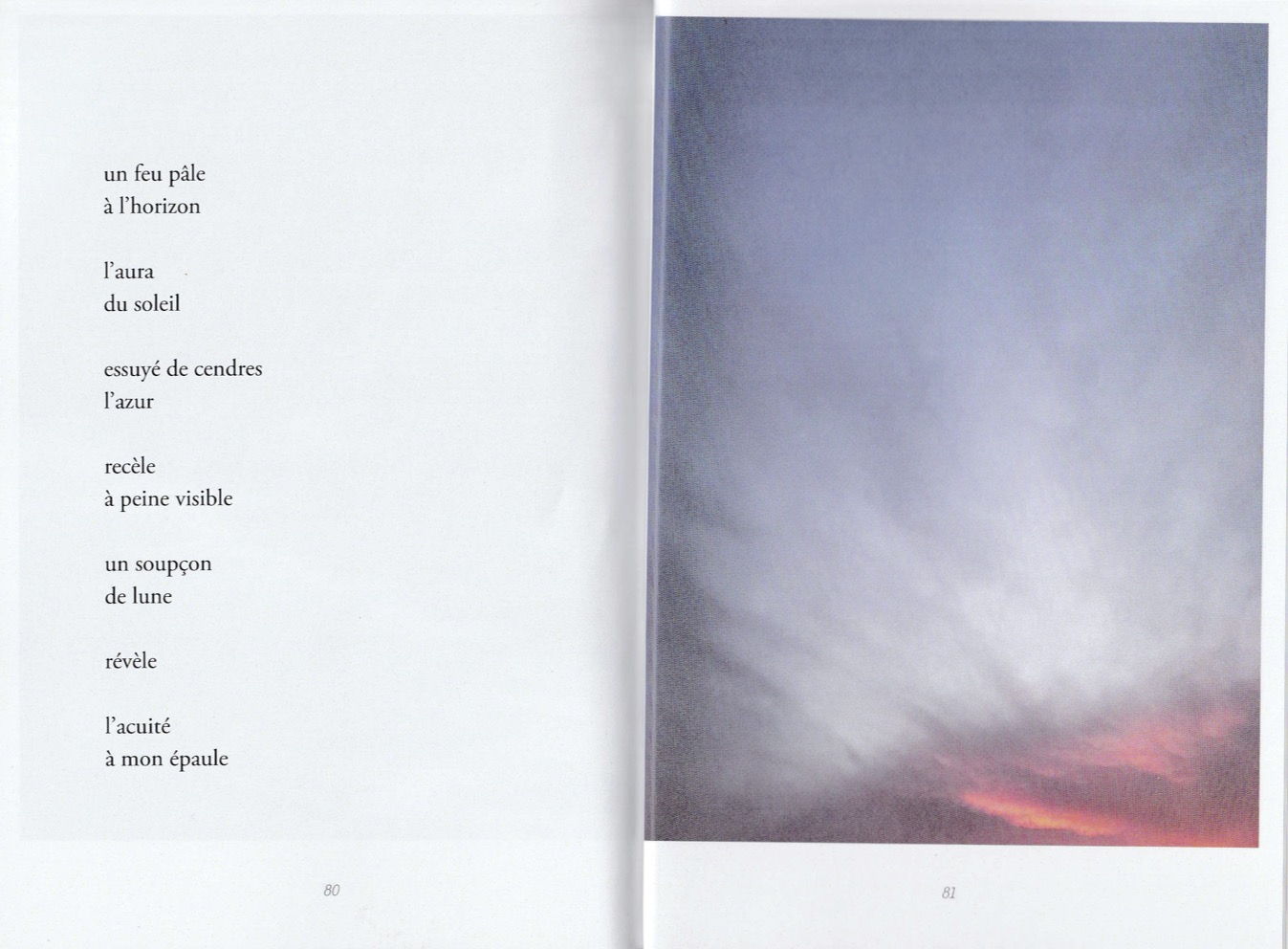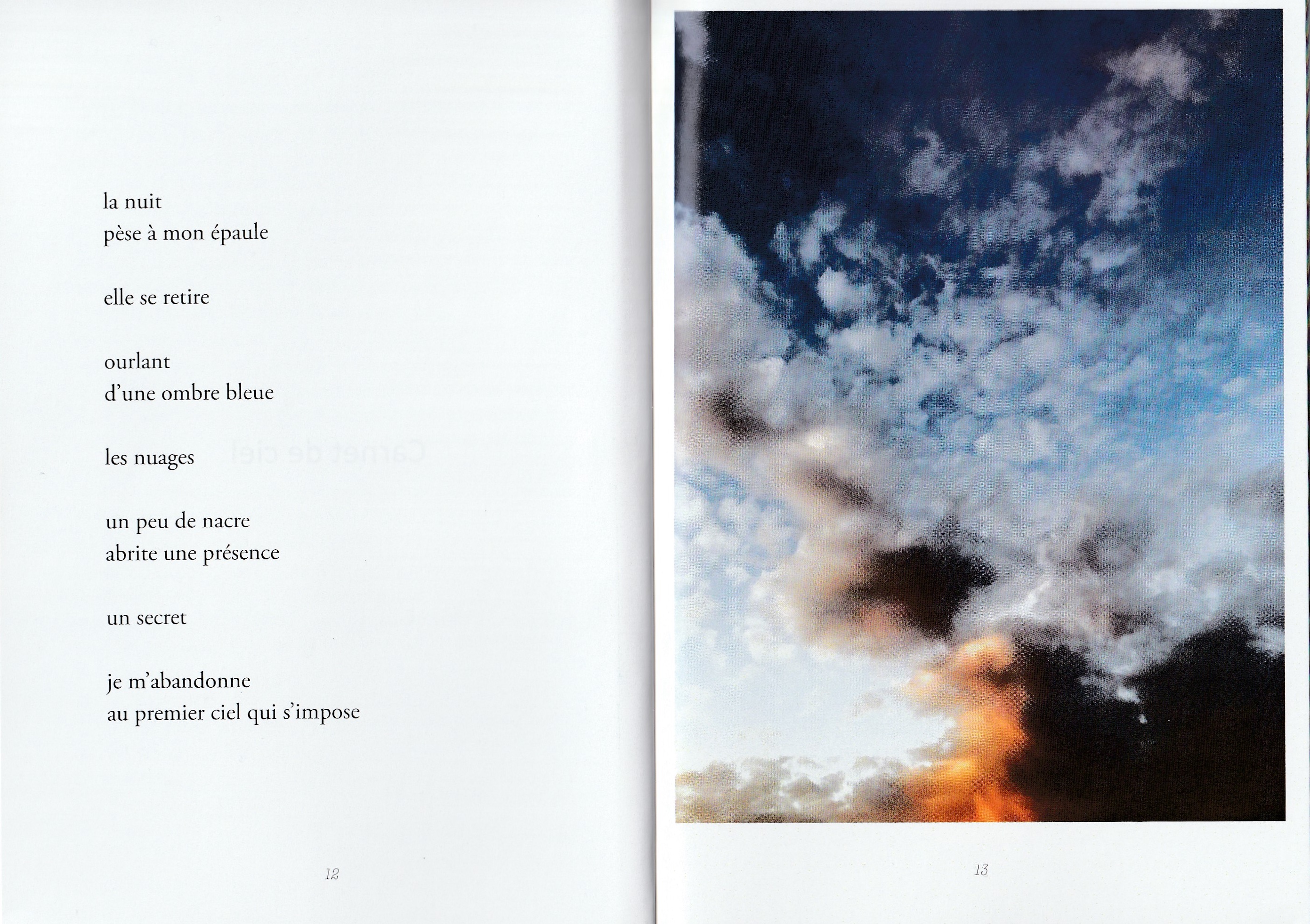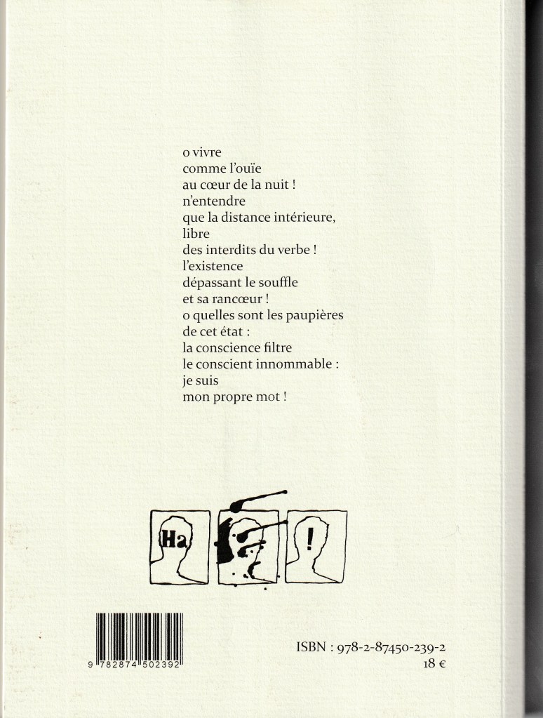 C’est un recueil conçu sur un lit d’hôpital, dicté au téléphone par quelqu’un de très affaibli (la septicémie gagne le corps, une main malade risque d’être perdue, diverses affections annexes se déclarent). Ce n’est donc pas un texte drôle, divertissant, ce n’est pas l’heure d’avoir de l’humour, de feindre de se réjouir, de rire ou de faire rire de ce qui nous arrive. Car ce qui arrive, c’est la fin. Alors c’est grave, et le ton est grave. Ce n’est donc pas non plus un texte virtuose, sûr de soi, astucieux ou malin, mais un texte laborieux et modeste (car survivre est un travail, et cette survie s’obtient de justesse. Un travail, c’est une force de vie qui doit se déplacer d’urgence, s’appliquer autrement, improviser là où on ne sait pas faire). Et enfin ce n’est pas un texte achevé, définitif, auto-suffisant : c’est le contraire d’un testament, parce que dans un testament il n’y a pas de points de suspension, et il n’y a pas d’images. Là, il y en a : le texte hésite sans cesse, et des calligraphies s’offrent comme des appuis, des haltes, des sortes de garde-à-vous rassurants pour une pensée dont les mots, eux, courent dans tous les sens et risquent de s’égarer, et de tout perdre.