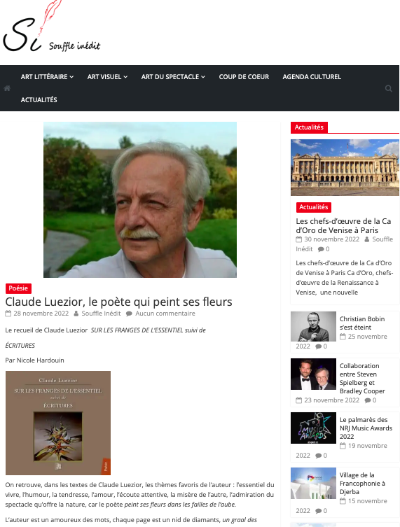 Les multiples combinaisons de situations pemettent à l’auteur de tenir son lecteur en haleine tout en l’amusant. Les écrits alignent leurs dentelles et leurs épices, au lecteur de s’en vêtir, de les déguster, ce qu’il fait avec joie dans ce recueil.
