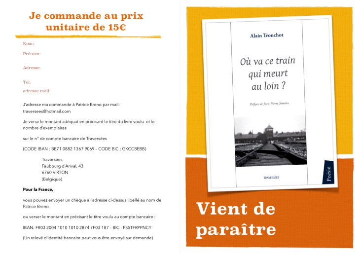 Alain Tronchot, Où va ce train qui meurt au loin ? Poésie, Préface de JP Siméon, Editions Traversées, 2019