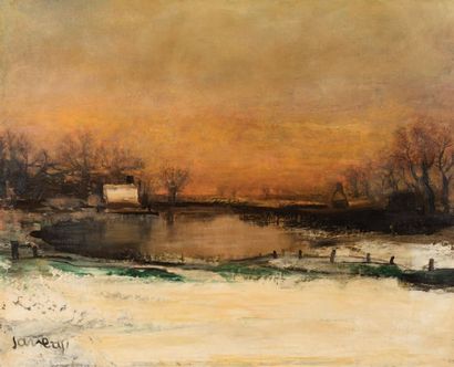 Paysage hivernal sur la Lys Huile sur toile Signée en bas à gauche H_63 cm L_78 cm