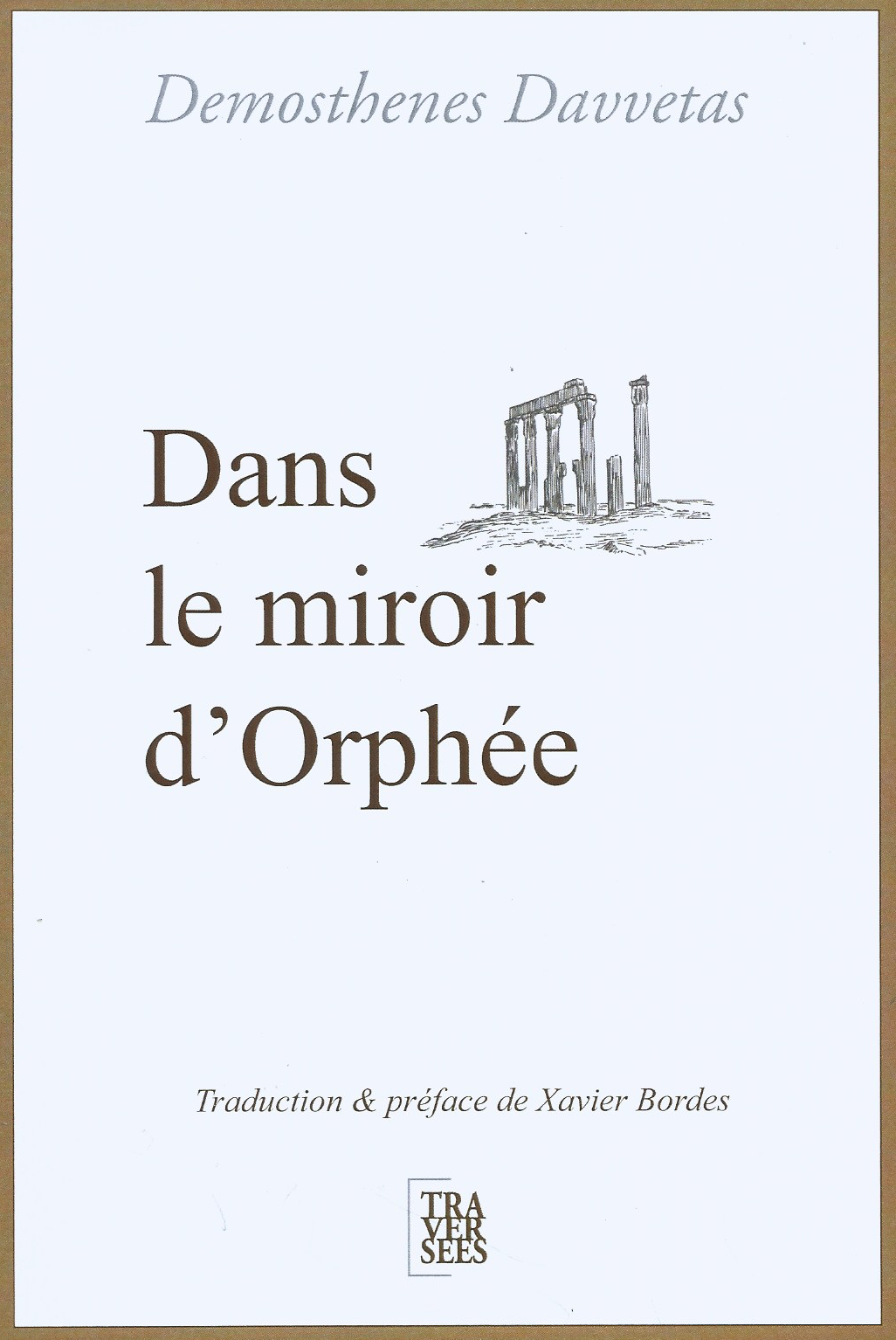 Demosthenes DAVVETAS, Dans le miroir d’Orphée, Traversées, 2019, 236p., 15 euros. Traduction du grec par Xavier BORDES.