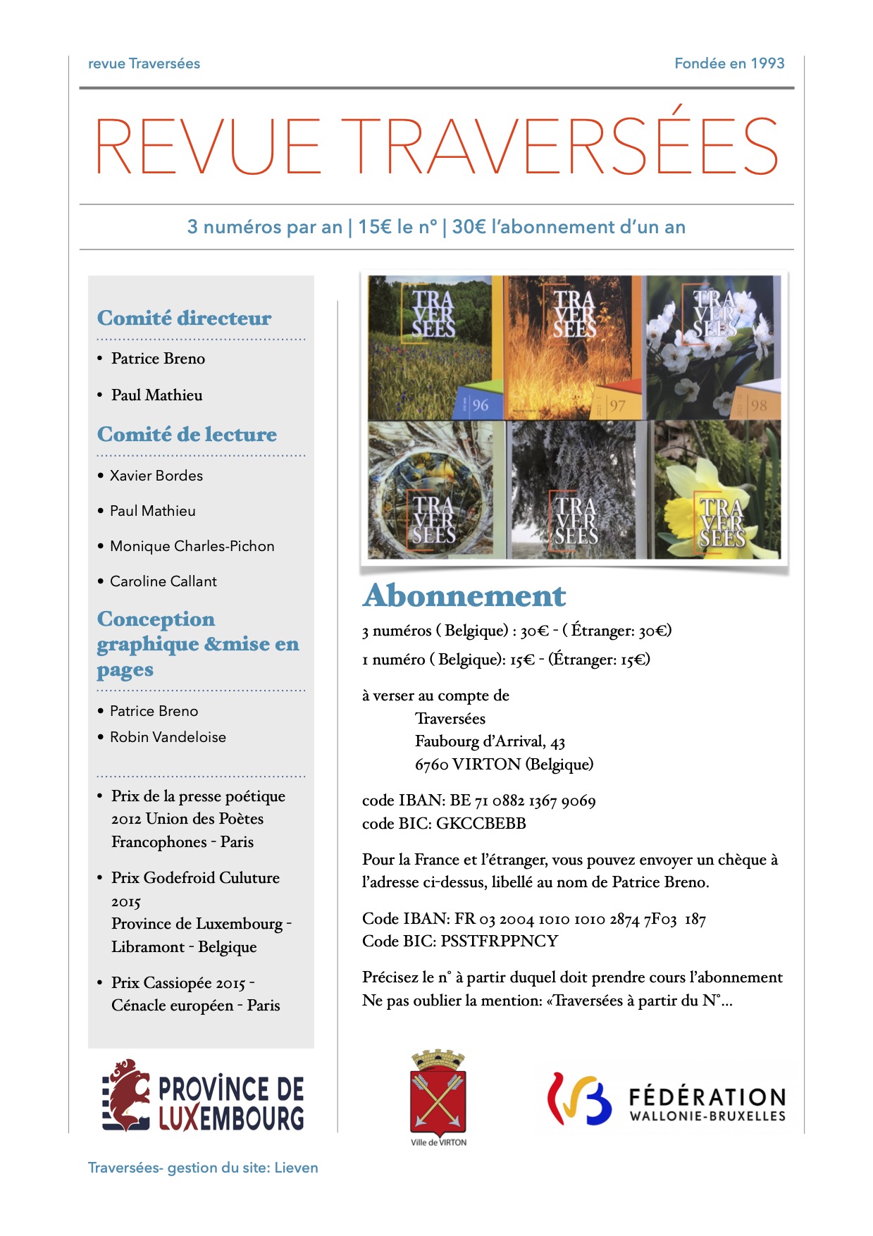 Si vous êtes publié dans la revue et que vous voulez figurer dans la liste des auteurs envoyez un lien vers votre site ou votre blog à Lievenn:ccallant@gmail.com